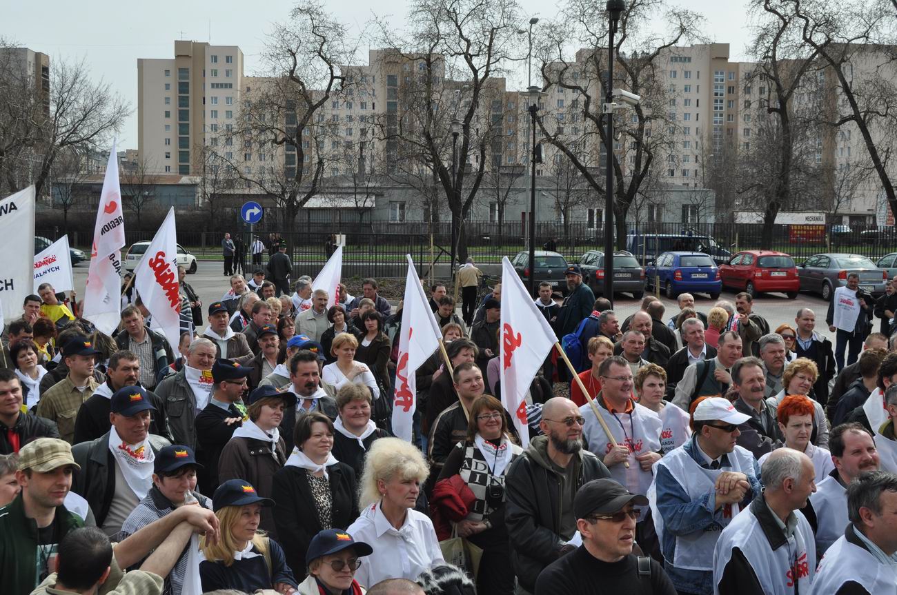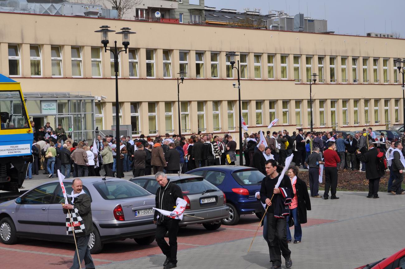Spotkanie a później pikieta związkowców pod siedzibą Przewozów Regionalnych, Warszawa