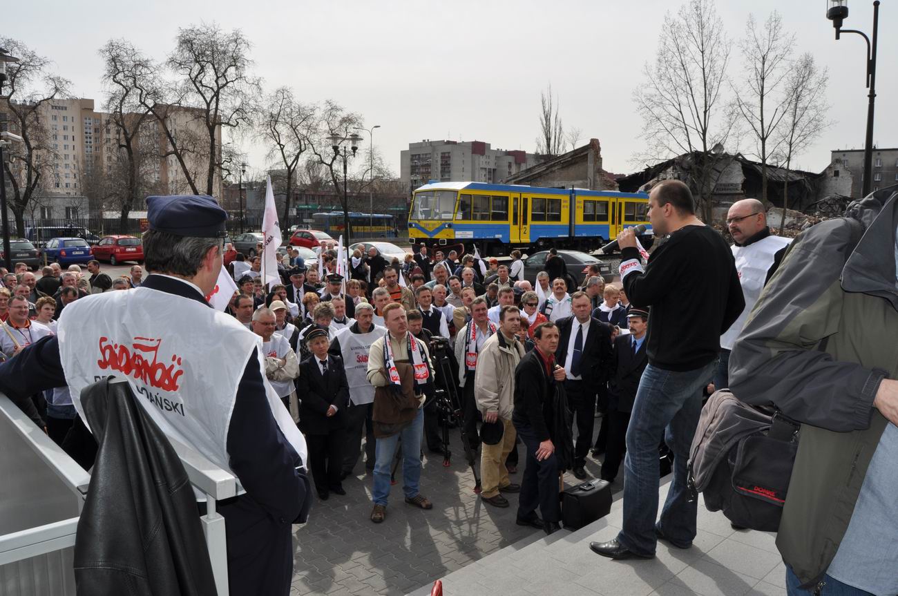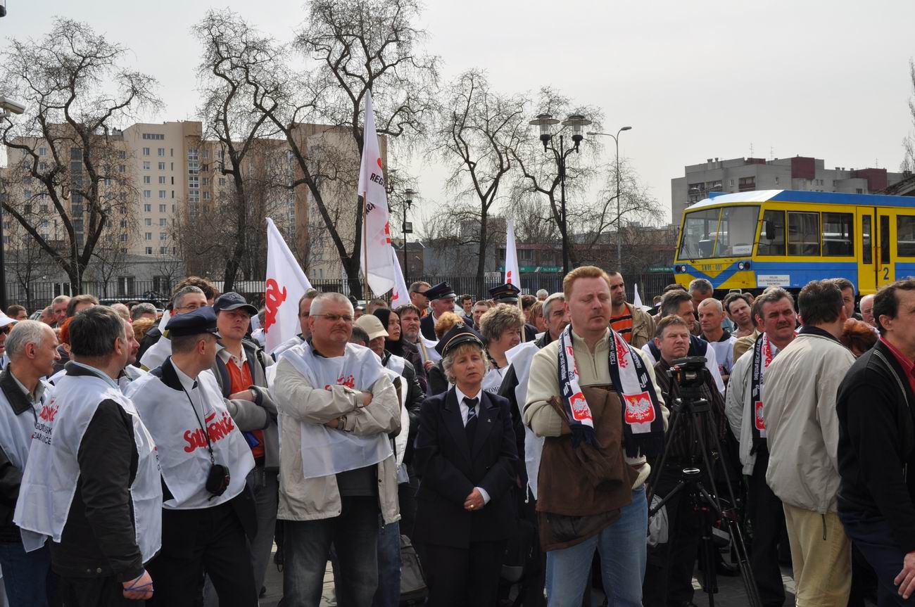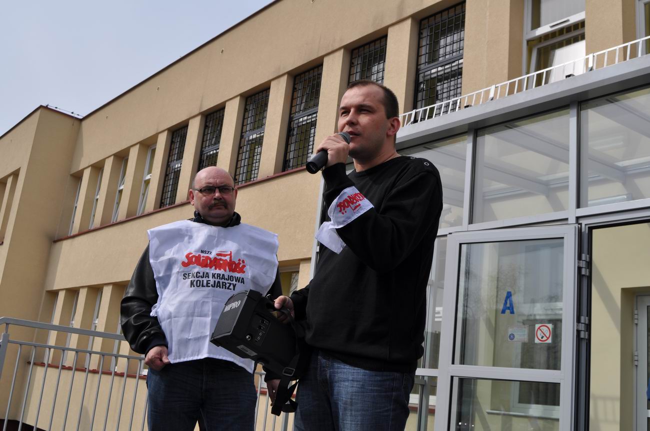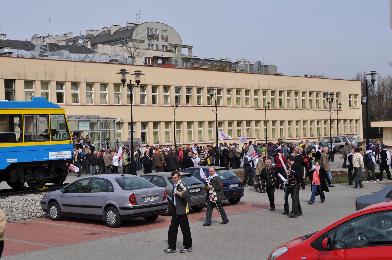 Spotkanie a później pikieta związkowców pod siedzibą Przewozów Regionalnych, Warszawa